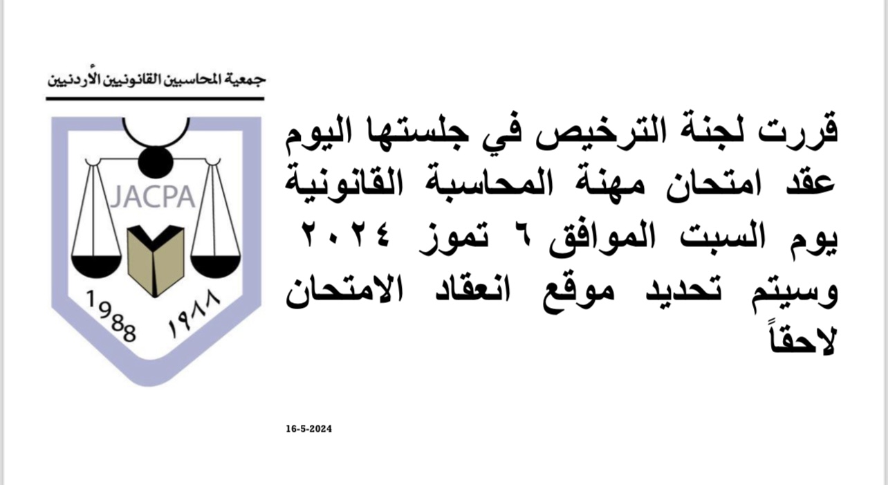 وبين الحمادين أن لجنة الترخيص قامت بإجراء الترتيبات اللازمة لعقد هذا الامتحان بمشاركة أساتذة أكاديميين متميزين ومحاسبين قانونيين مهنيين من ذوي الخبرة والكفاءة والسمعة الطيبة مضيفاً أن الامتحان تم بكل شفافية ونزاهة ومصداقية.