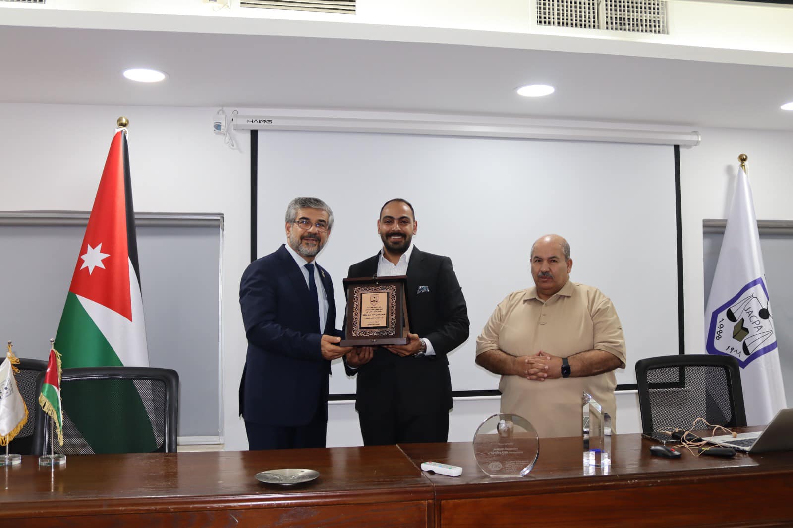 عمّان – عقدت جمعية المحاسبين القانونيين الأردنيين يوم السبت الموافق 6 أيلول 5202 دورة تدريبية متخصصة بعنوان “معيار المحاسبة الدولي للزراعة (41IAS )”. افتُتحت الدورة بحضور عطوفة المهندس بكر بركات، مساعد أمين عام وزارة الزراعة للإرشاد الزراعي، ممثّلًا عن معالي وزير الزراعة، حيث أكد في كلمته على أهمية المعيار في دعم قطاع الزراعة وتعزيز الشفافية في إعداد التقارير المالية ذات العلاقة. قدّم الدورة الزميل الأستاذ أسعد أبو عامر، مستعرضًا أبرز الجوانب الفنية والتطبيقية للمعيار، ومبينًا انعكاساته العملية على إعداد التقارير المالية والالتزام بالمعايير الدولية ذات الصلة. وقد شهدت الدورة حضورًا واسعًا من الزملاء، سواء بشكل وجاهي في مقر الجمعية أو من خلال المشاركة عبر الإنترنت، مما يعكس اهتمام الأعضاء الكبير بموضوع المعيار وتطبيقاته العملية. وتأتي هذه الدورة في إطار حرص الجمعية على رفع كفاءة أعضائها، وتزويدهم بالمعرفة المتخصصة التي تعزز قدراتهم المهنية، وتمكّنهم من مواكبة التطورات المتسارعة في البيئة التشريعية والرقابية، وبما يسهم في تعزيز جودة المهنة والارتقاء بخدماتها.