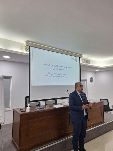 شارك نائب رئيس مجلس الإدارة الأستاذ عماد أبو حلتم ممثلاً عن جمعية المحاسبين القانونيين الأردنيين في المؤتمر العلمي المشترك بين كلية الأعمال والاقتصاد/الجامعة الأردنية وجامعة النجاح / فلسطين بعنوان نحو مستقبلٍ مرن: تجسير الفجوة بين الأبتكار والذكاء واستدامة الأعمال الحديثة، وذلك يوم الأربعاء الموافق 17/4/2024، بحضور عدد من أعضاء المجلس، أ. قصيً عبيدات و أ. منير القواسمي و قد تحدث أ عماد أبو حلتم ضمن جلسة محور التدقيق ومعايير الاستدامة عن معايير الاستدامة الجديدة التي صدرت عن مجلس معايير الاستدامة الدولي (ISSB) المؤسس عن IFRS Foundation في عام ٢٠٢١ حيث أن هذه المعايير ستكون نافذة المفعول إبتداءً من 1/1/2024، علما أنها ستوحد لغه الإفصاح و التقرير عن الاستدامة ضمن الإفصاحات والإيضاحات للبيانات المالية للشركات والبنوك و المتوقع أن تلتزم بذلك في الفترة القادمة . وقد أضاف أ. عماد ابو حلتم، إلى أنه إبتداءً من عام 2022 أصبح لزاما على بعض أهمً الشركات المساهمه العامه الأردنيه تحت ما يسمى ASE Index…